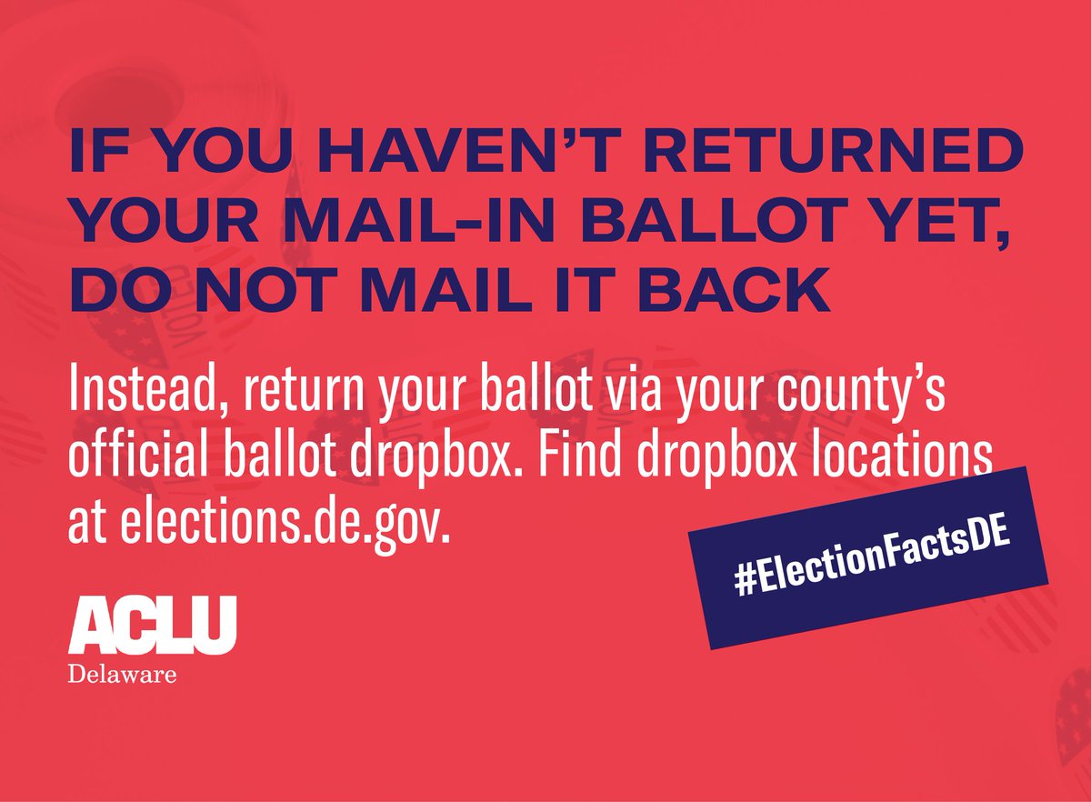 If you haven't returned your mail-in ballot yet, *do not* mail it back at this point. Instead, return your ballot via your county's official ballot dropbox. You can find dropbox locations here: https://elections.delaware.gov/services/voter/votebymail/index.shtml …pic.twitter.com/OLeqRY0501