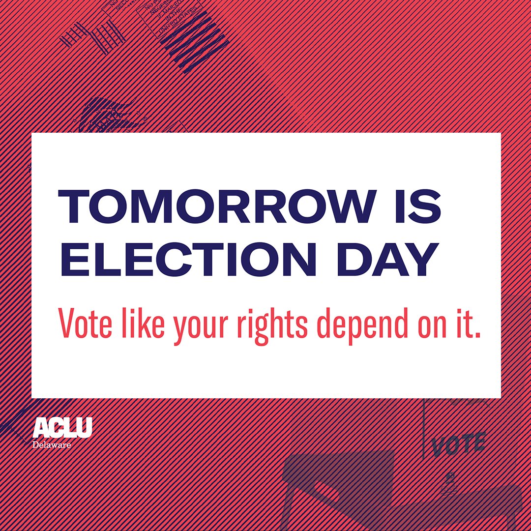 We're one day out! If you haven't yet, today's the day to make a voting plan. Find your polling location, check the status of your mail-in ballot: http://iVote.DE.gov Find an official ballot dropbox location: https://elections.delaware.gov/services/voter/votebymail/index.shtml … More info: http://ACLU.org/Voter/DE pic.twitter.com/9xBdOciuHN