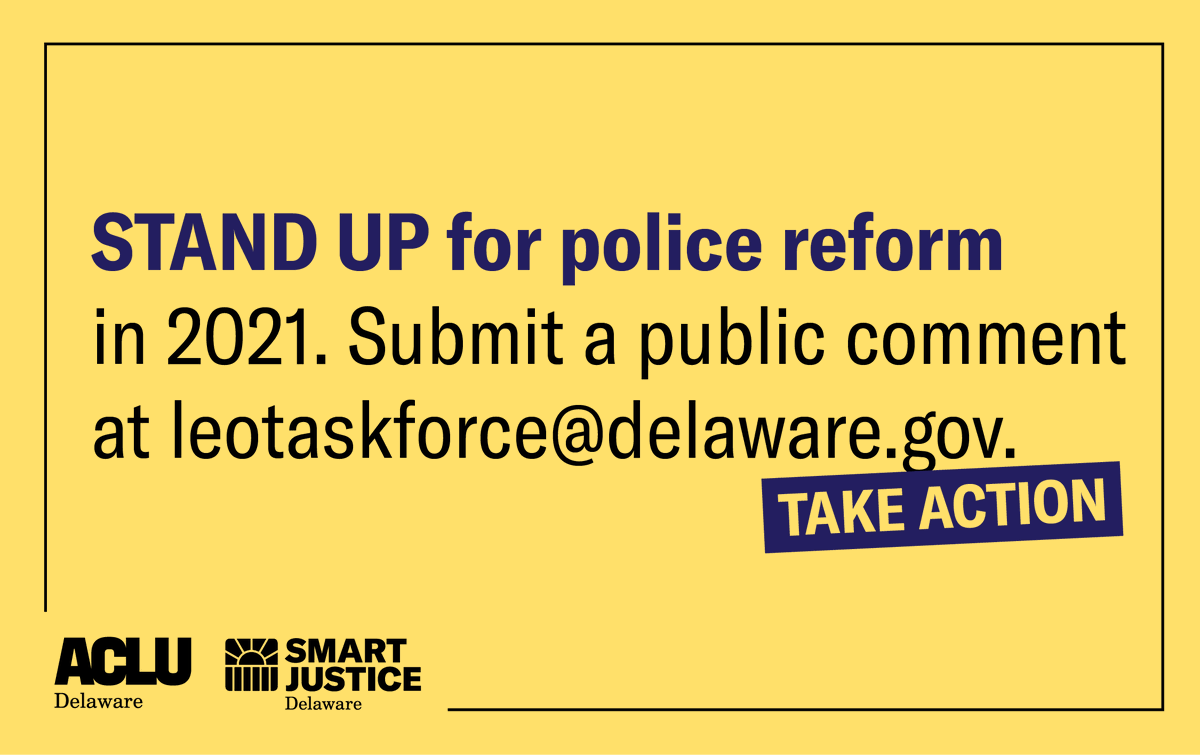 The LEATF has the power to be a driving force for real policy changes that ensure fairness, transparency, and accountability in law enforcement, which would make us all more safe. Submit a public comment before the next task force meeting on 12/2 @ 6pm: https://www.aclu-de.org/en/news/law-enforcement-accountability-task-force-action-guide …pic.twitter.com/pMGsjC4xWB