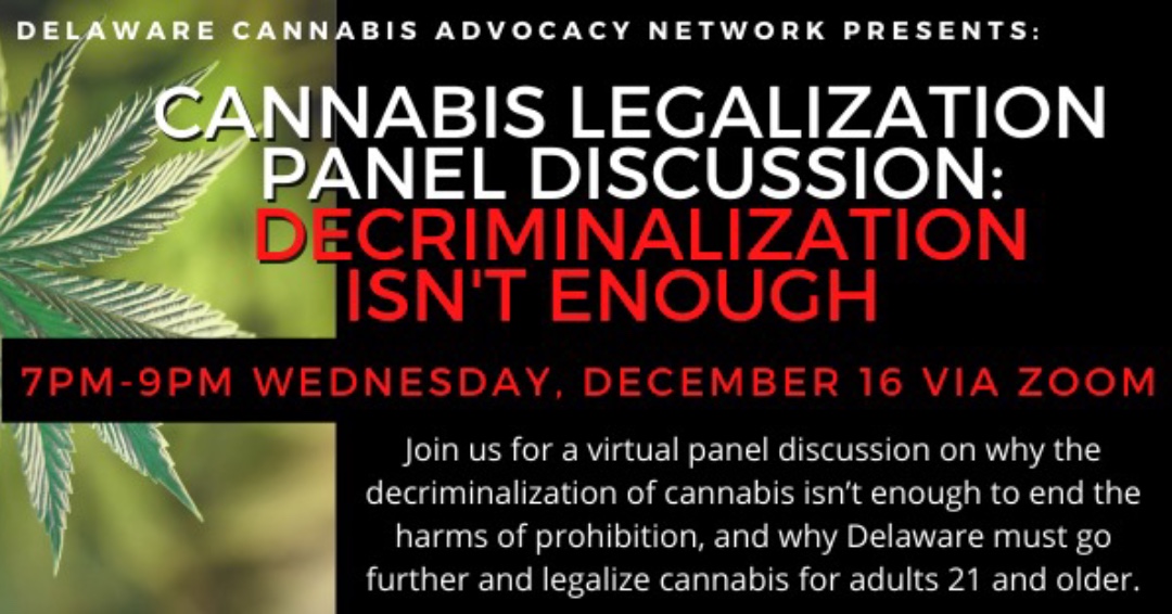 Join Delaware Cannabis Advocacy Network & partners on 12/16 at 7pm for a virtual conversation on why the decriminalization of cannabis isn’t enough to end the harms of prohibition & why Delaware must legalize cannabis for adults 21 & older. More info: https://www.facebook.com/events/829607747828491 …pic.twitter.com/vihwb0PILQ