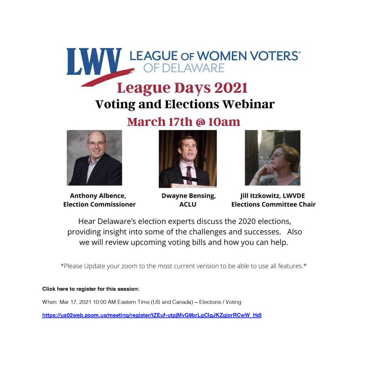 Join @LWVDE for the second event of their League Days series.