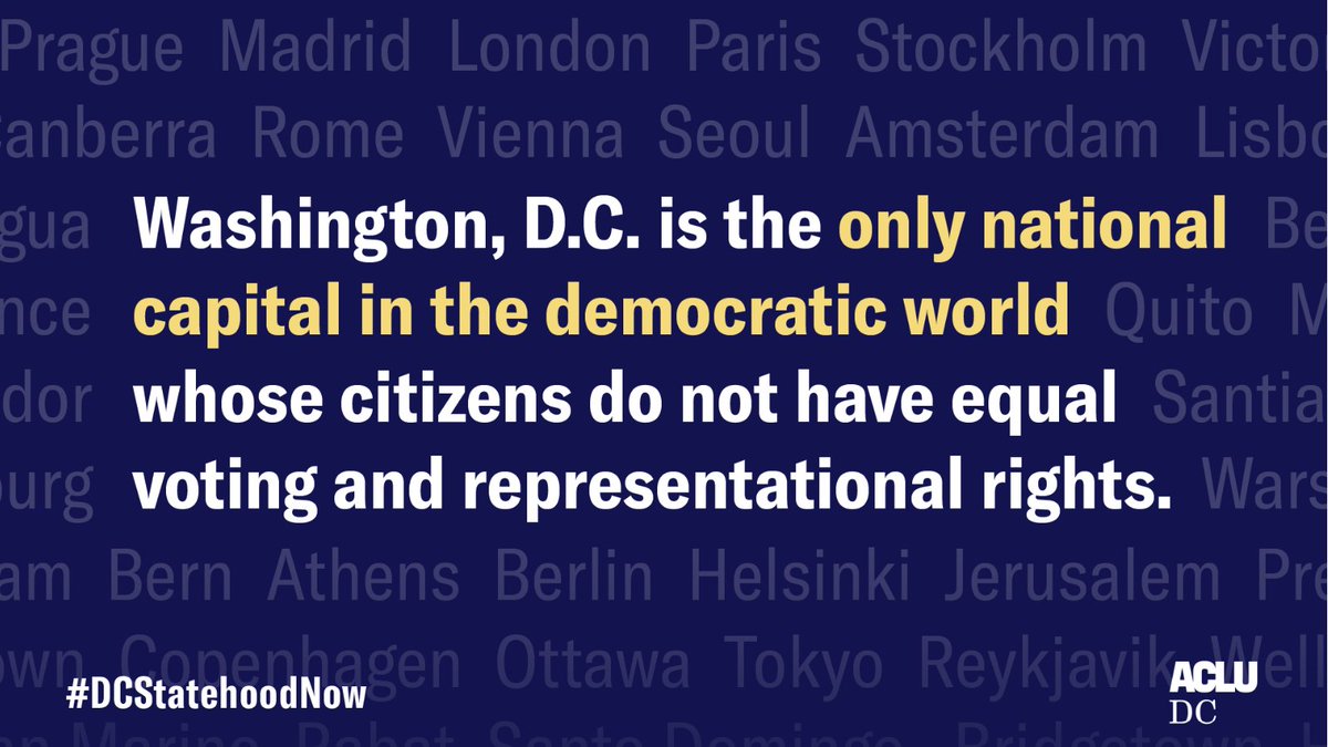 D.C. is the only national capital in the democratic world whose citizens don’t have full and equal representation and voting rights It’s past time to pass #HR51. #DCStatehoodNow pic.twitter.com/1iXzg7mGGt
