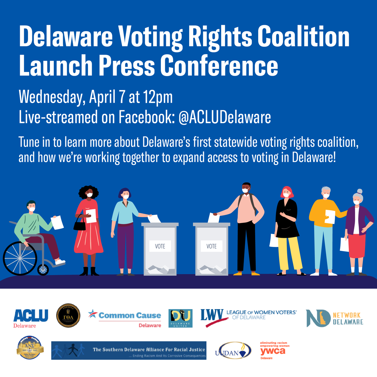 Join us via live-stream to hear about how we're all working together to expand voting access in Delaware.