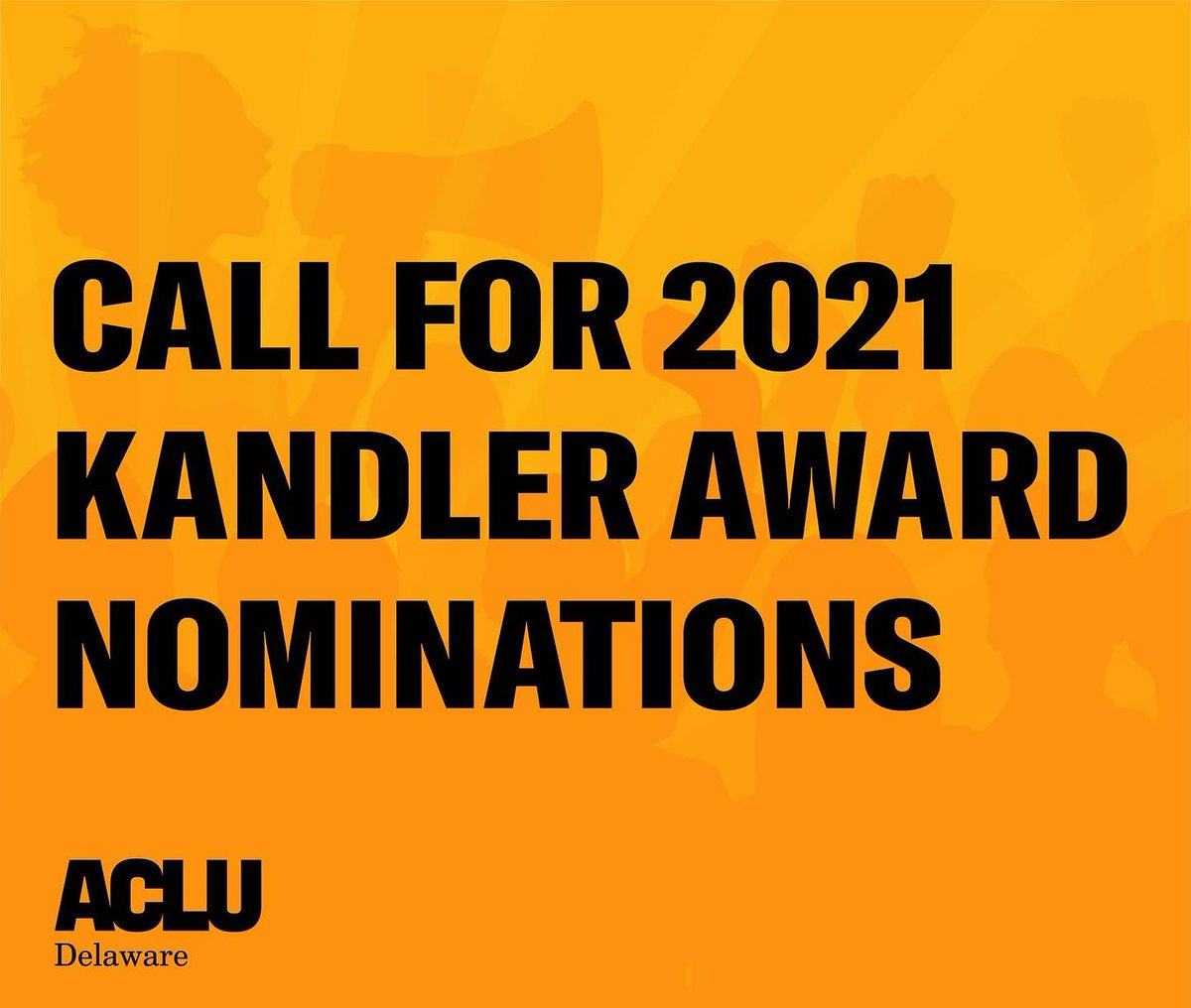 ⏰ The clock's ticking to nominate a Delawarean advocate and defender of civil liberties for the 2021 Kandler award! Submit your nomination(s) via email to aharris@aclu-de.org no later than 4/23 @ 5pm. More info on submission requirements here: https://www.aclu-de.org/en/news/kandler-nominations-now-open ….pic.twitter.com/6QbYZAZeHu