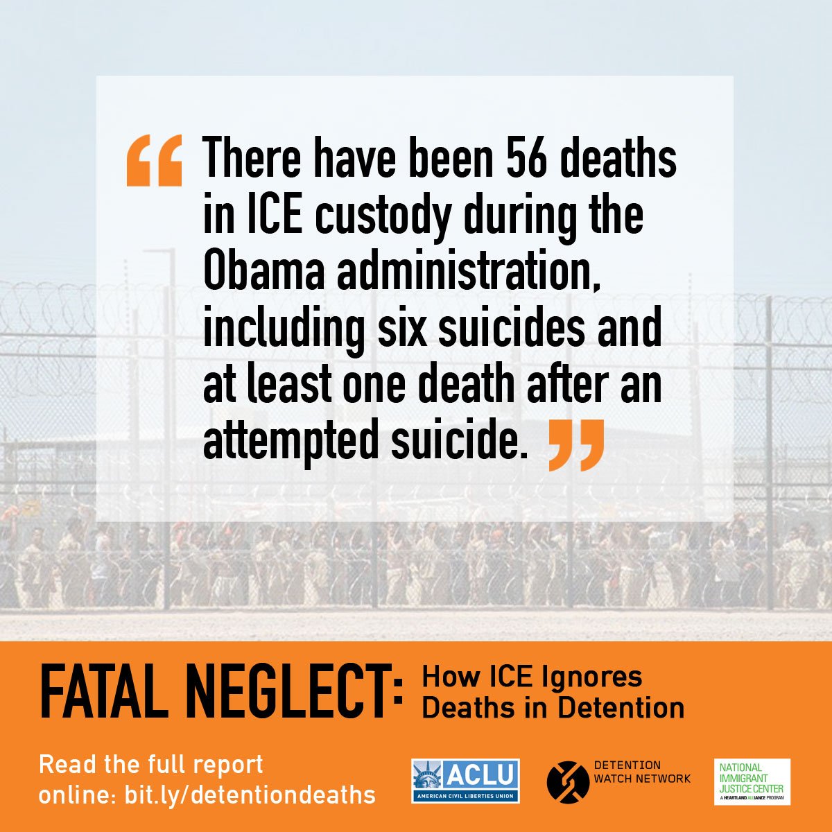 "Fatal Neglect: How ICE Ignores Death in Detention" released today. #detentiondeaths https://www.aclu.org/report/fatal-neglect-how-ice-ignores-death-detention …pic.twitter.com/4RHiXJ871s