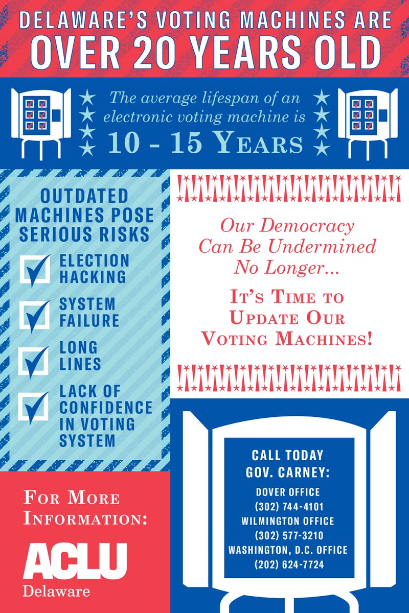 Dept of Elections public comment mtg 11/9 2:30 - 3:00 pm @ Leg. Hall in Dover. Show up & let @JohnCarneyDE know #DENeedsNewVotingMachines!pic.twitter.com/4SVIHIj8VT