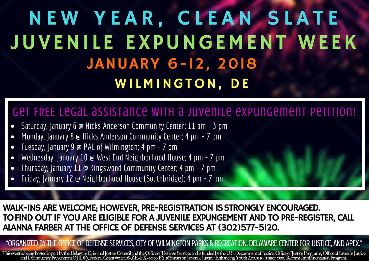Are you one of over 25,000 people in Delaware with a juvenile record eligible for a mandatory expungement? Don't miss this opportunity to get your #CleanSlate! This is a free service offered through ODS; walk-ins welcome, but it's best to register ahead. #NetDE #YouthJusticepic.twitter.com/C8gAtuQ9ZL