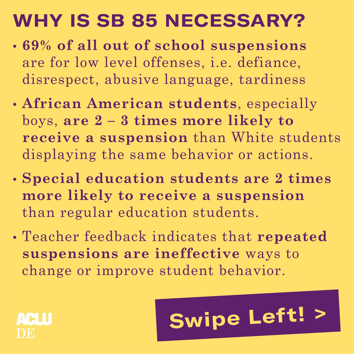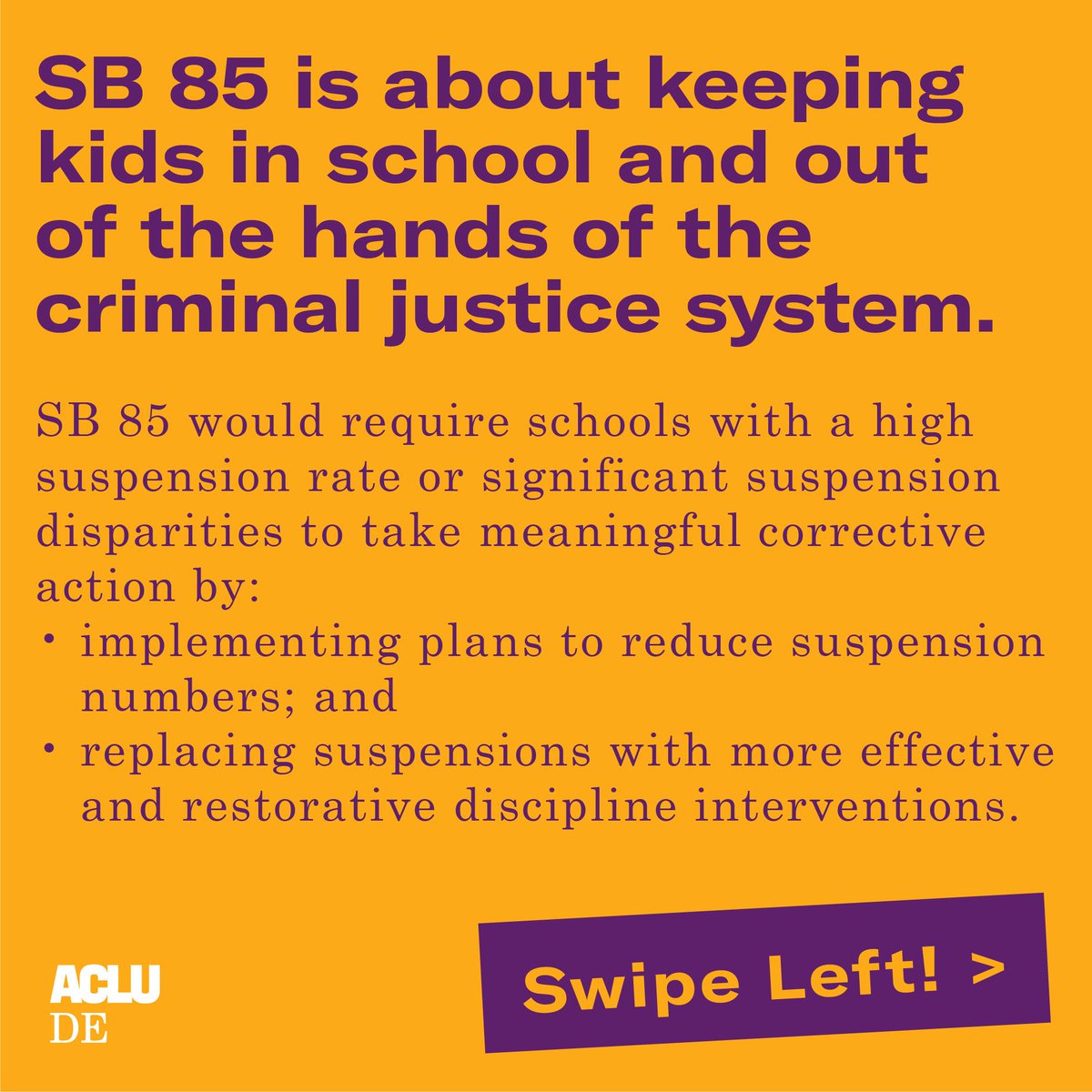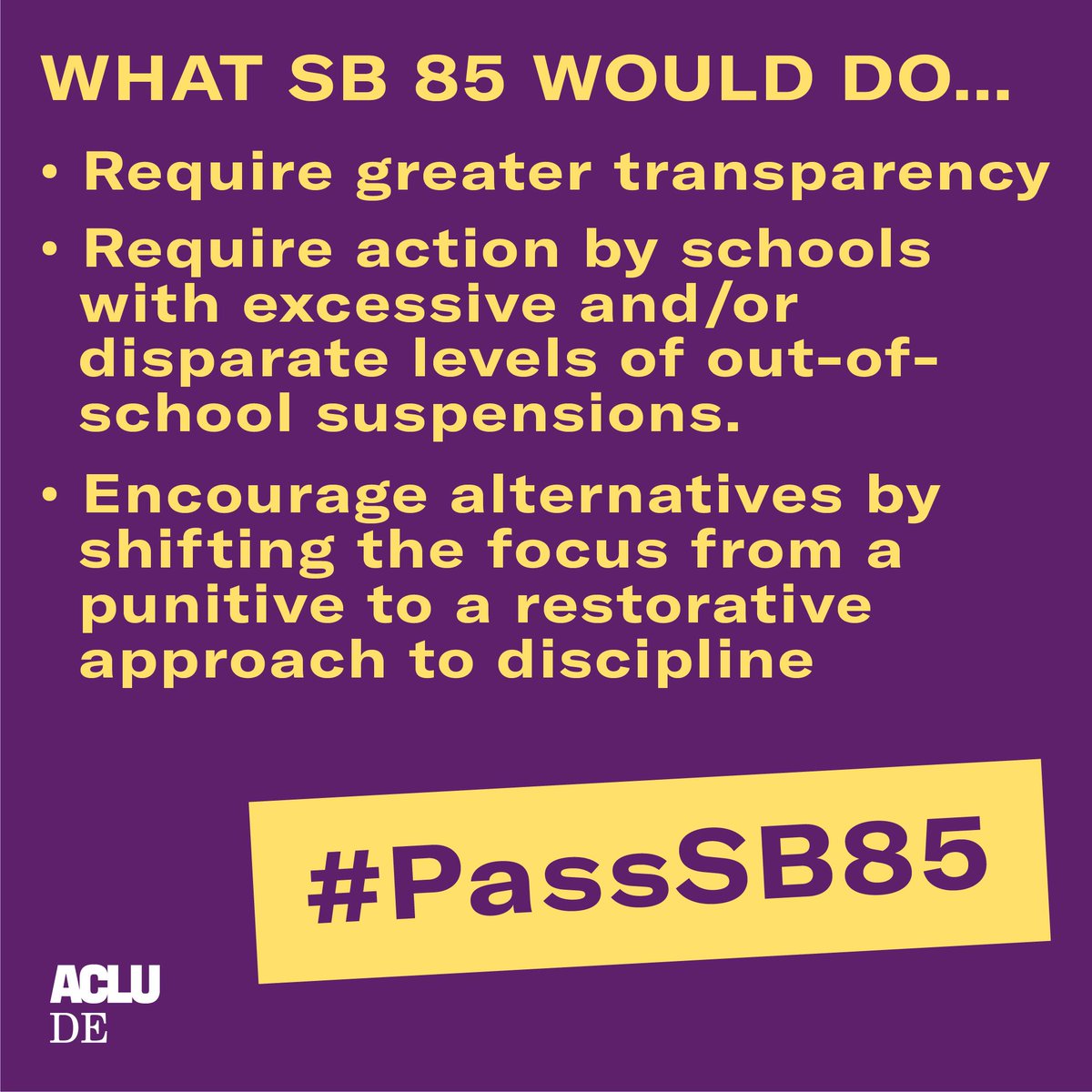SB 85 is about a different approach to school discipline. Call, write and shout-out your legislators; let them know you want them to #PassSB85 and #KeepkKidsInSchool.pic.twitter.com/5iWYFxzSCU