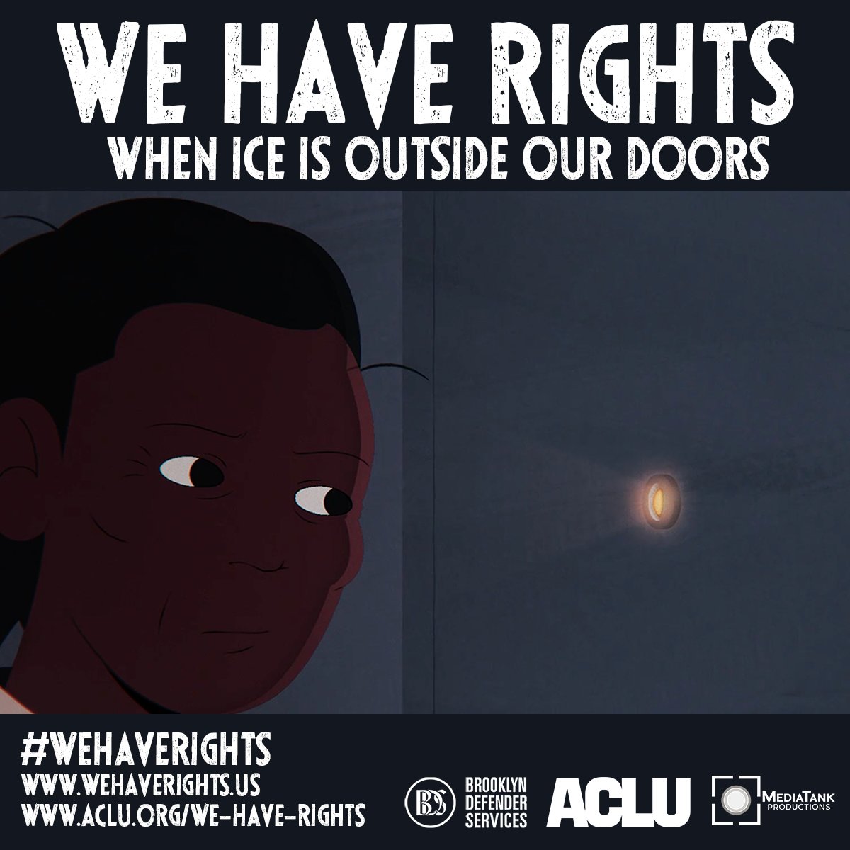 ICE may say they’re looking for a relative, friend, or roommate – do not open the door. Remember, #WeHaveRights: Without a warrant signed by a judge, ICE cannot enter your home. Get informed by watching this series of 4 videos in 7 languages at http://www.aclu.org/we-have-rights pic.twitter.com/7hA4E2wdSh