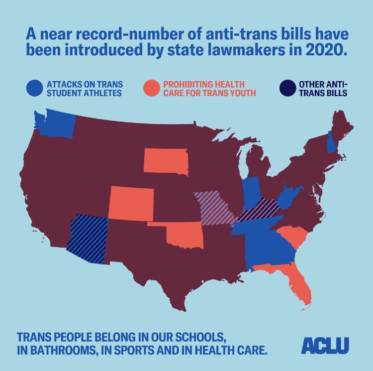 A staggering number of anti-trans bills have been introduced by state lawmakers across the nation in 2020. Here’s what the landscape of these threats to our civil rights looks like.pic.twitter.com/xxg3gsyvYd