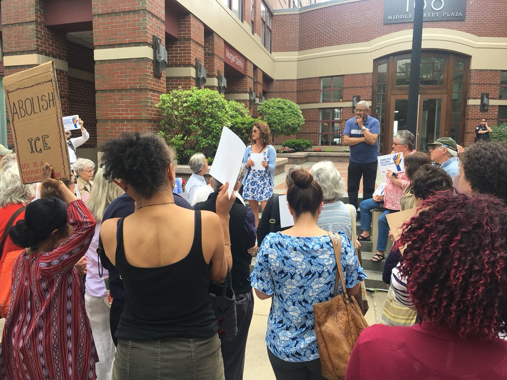 Happening now: 75 people rallying outside US Attorneys Office in Portland #FamiliesBelongTogetherpic.twitter.com/HnTqQj25xT