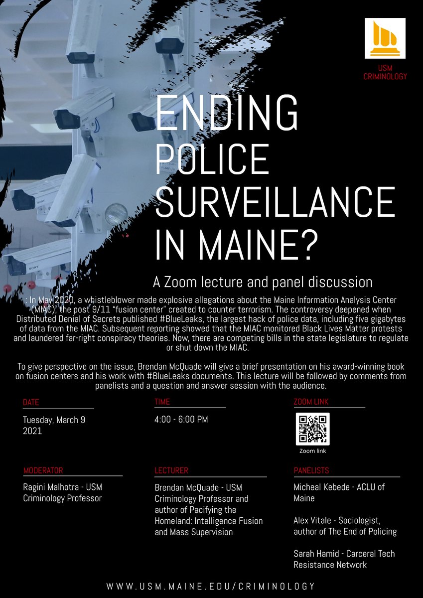 Learn about how mass surveillance operates in Maine, and what can be done to stop it. @USouthernMaine is hosting an all-star panel on the topic, including ACLU of Maine's policy counsel, Michael Kebede. Details: https://cms.usm.maine.edu/criminology/ending-police-surveillance-maine-0 …pic.twitter.com/3midSZPBbc