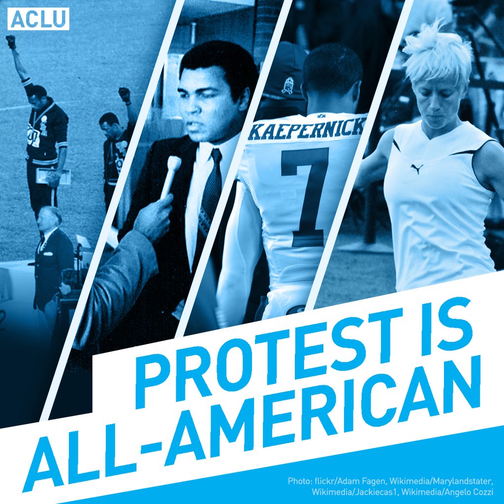 Protest is All-American. https://www.aclu.org/blog/speak-freely/san-francisco-49ers-colin-kaepernick-kneeled-so-we-may-all-stand-taller …pic.twitter.com/3v5QfG9uxq