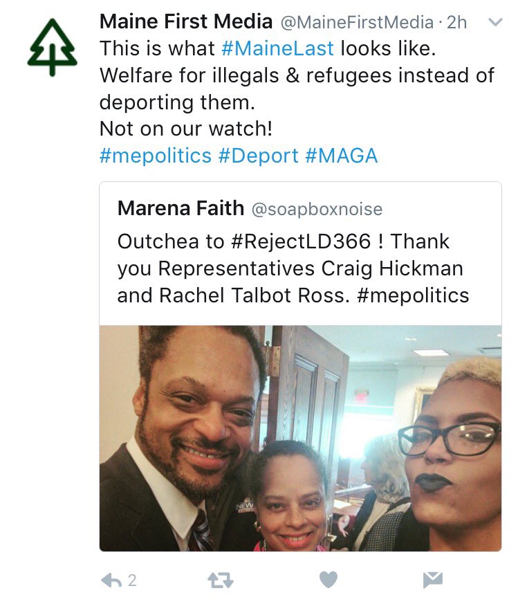 This is what racism looks like. @MaineFirstMedia @soapboxnoise #mepoliticspic.twitter.com/HYtMDk7Wl0