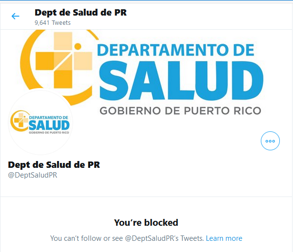 #PuertoRico government must unblock Twitter users NOW while there's a pandemic. The public has a right to read AND criticize its health department especially in midst of a pandemic @DeptSaludPR @wandavazquezg @DavidBegnaud @latinorebels @democracynow #coronavirus #COVID19https://twitter.com/latitanica/status/1244977602156212226 …
