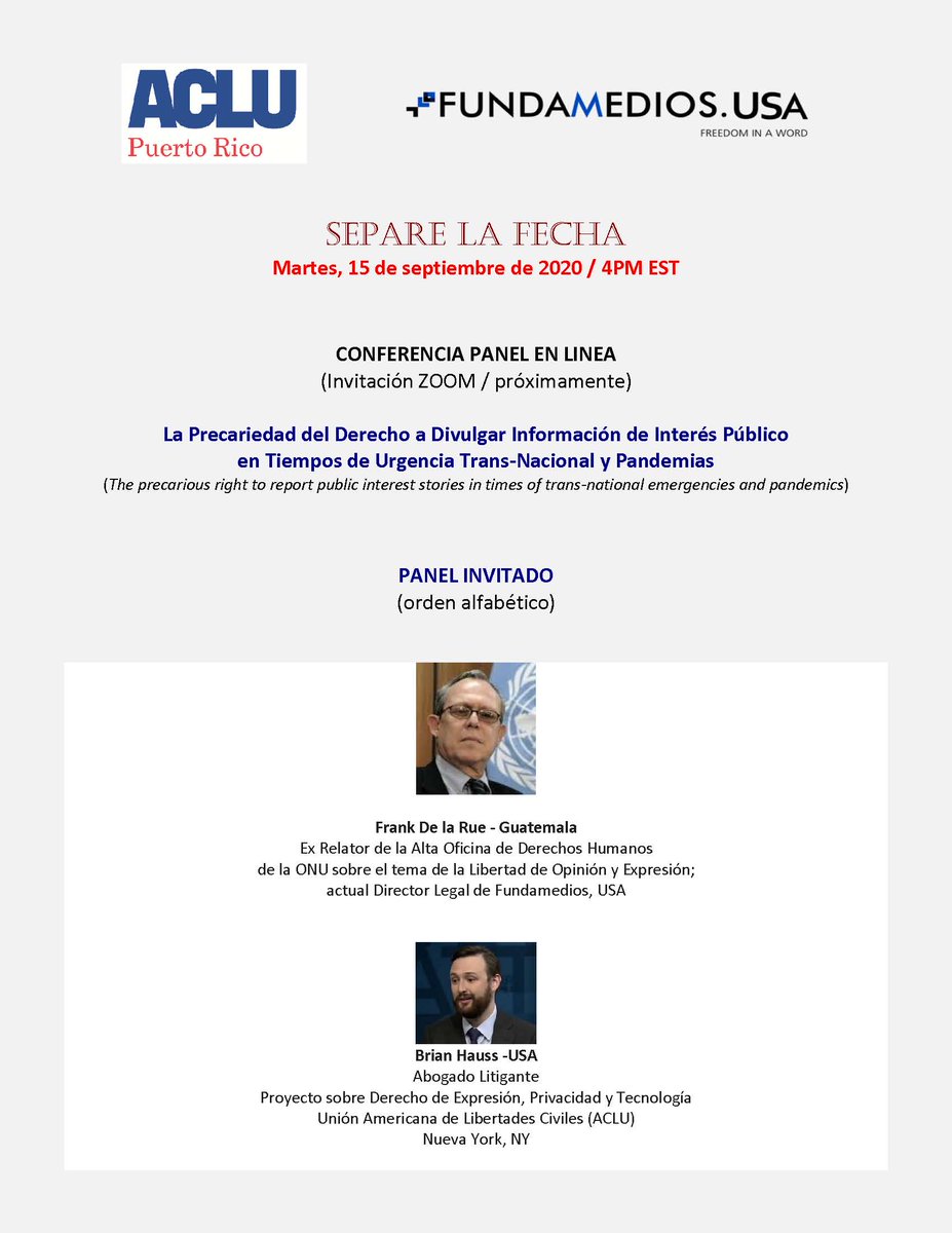 @FUNDAMEDIOS @opcpr @asppro_oficial @pressfreedom @EApuertorico @Kilometro0PR @banderaroja_pr @DialogoUPR @80grados @Tanamah @ClaridadPR @eldiariony @noticel @EFEnoticias @VoceroPR @GFRMedia @UnivisionPR @TelenoticiasPR @WapaTVhttps://twitter.com/ACLUPR/status/1302244959416979457 …