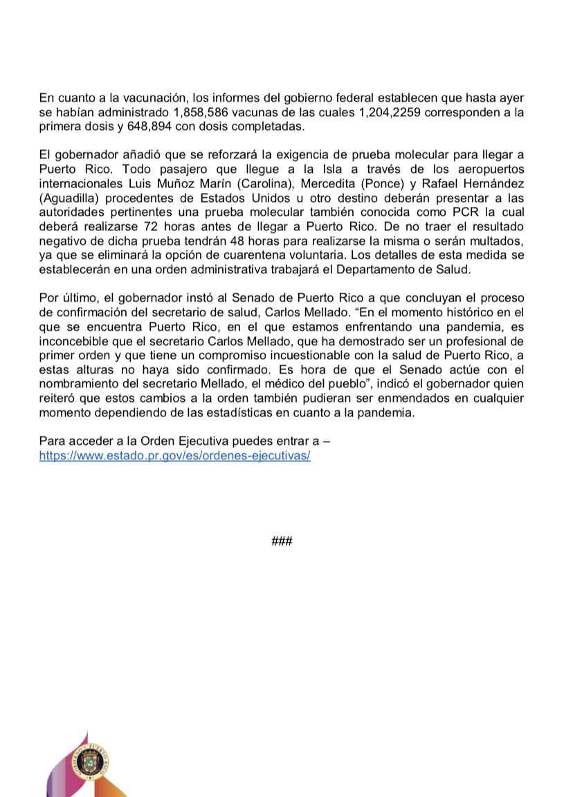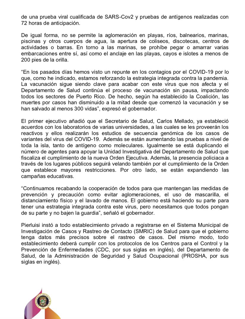 [Comunicado de Prensa] @GovPierluisi anuncia cambios a la Orden Ejecutiva por COVID-19 pic.twitter.com/IZ0Fb8fY89