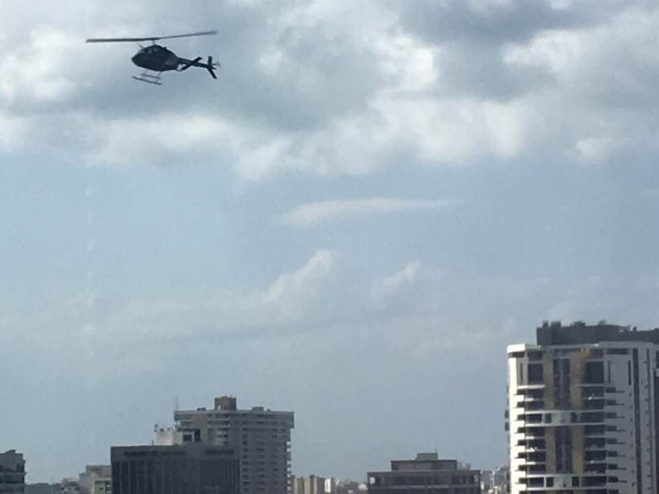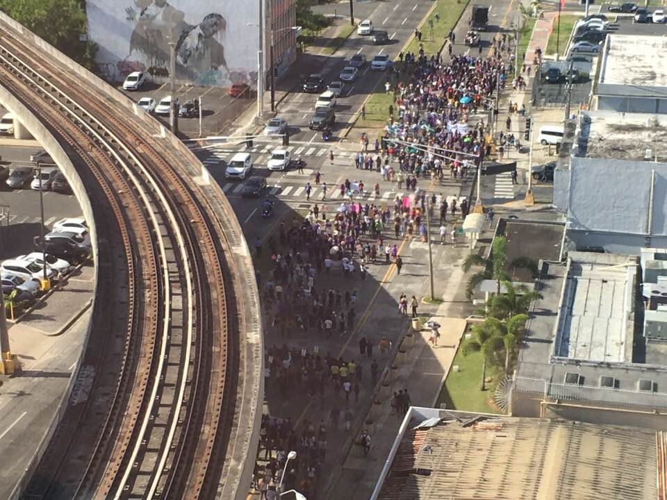 Women arriving on route to the Fiscal Control Board building in San Juan’s financial district, while police rapid response teams surveil from the sky. ACLU legal observers team is on the ground and observing from offices.pic.twitter.com/HJtgbuDwan