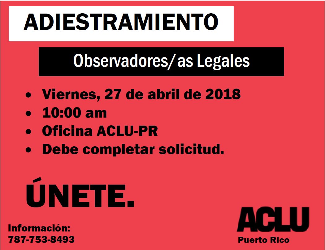 AVISO: Adiestrmiento para Observadores Legalespic.twitter.com/bomTe0fonf