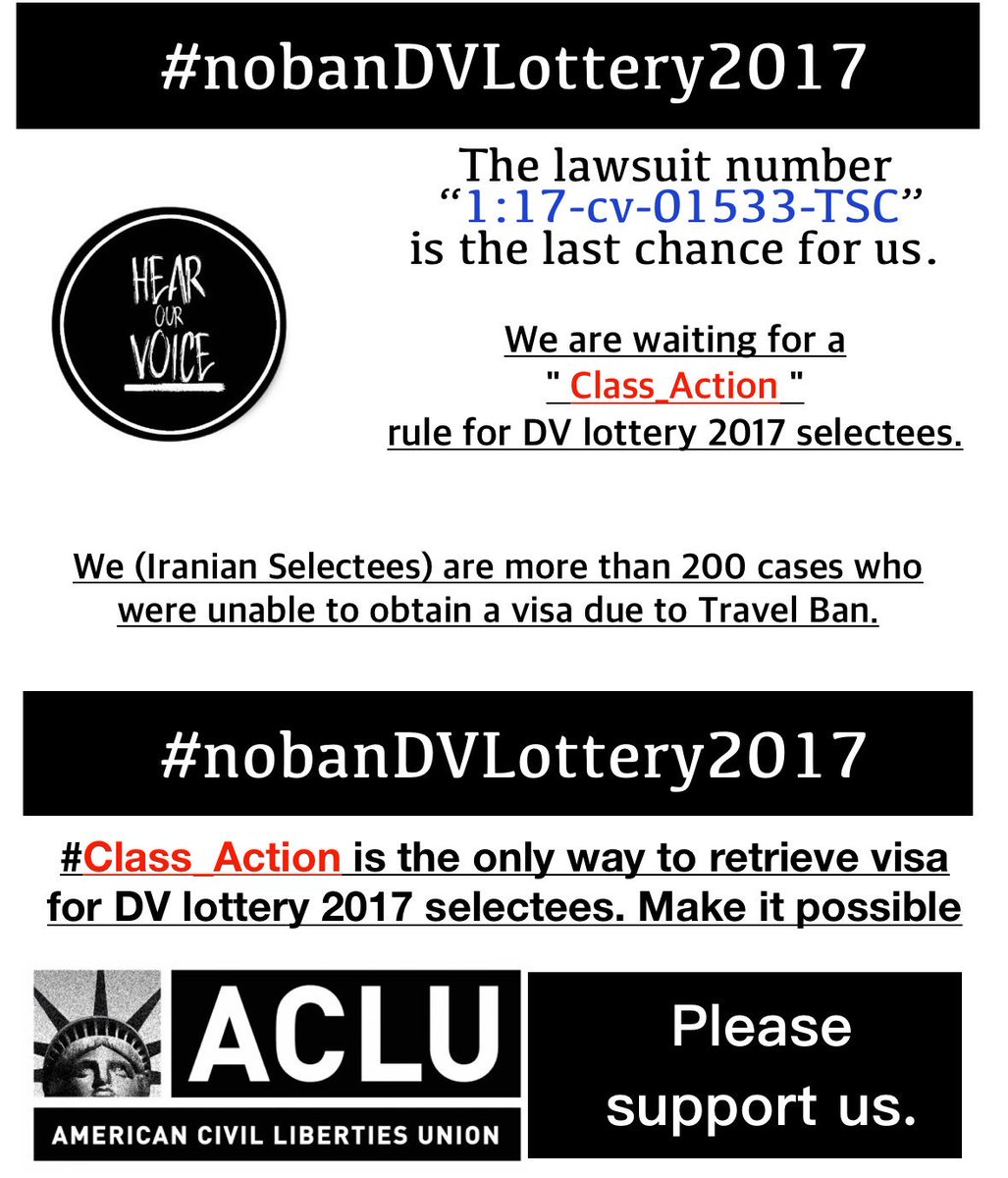 #Class_Action " rule is the last chance for DV lottery 2017 selectees who were cleared and ready to get visa BUT due to the#TravelBan they didn’t.@WangCecillia@YolandaCRondon@OmarJadwat@JB_Cox @adctweets@ACLU_DC@RepYvetteClarke@NILC_org#NoBanDvLottery2017@camanpourThanks. Twitter will use this to make your timeline better. UndoUndo