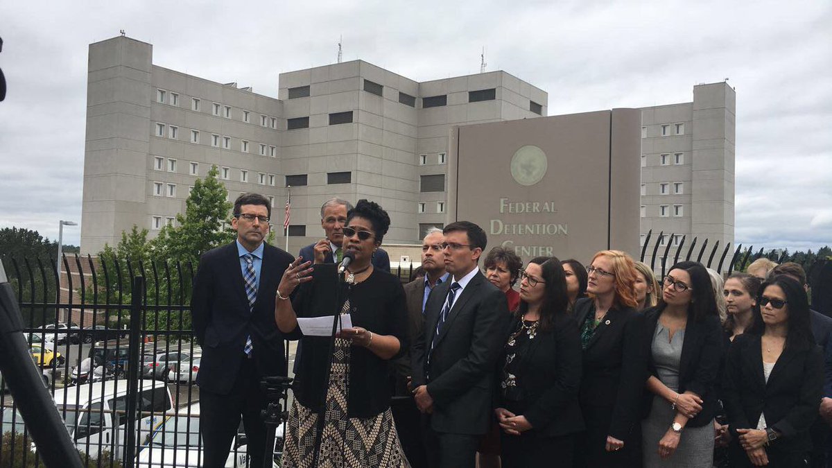 Our Deputy Dir. @mestorms spoke at a press event about family separation and incarceration and the fight to stop it! With @agowa @govinslee @NWIRP & Solicitor General Noah Purcell. Read more about @ACLU’s Ms. L v. ICE suit against family separation: https://www.aclu.org/cases/ms-l-v-ice …pic.twitter.com/K8bOWNkDqN