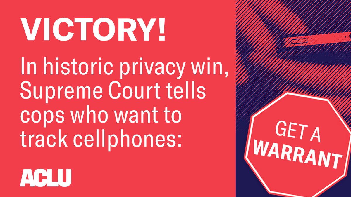 Today, the Supreme Court decided that the seizure of cellphone location tracking data constitutes a search under Fourth Amendment and requires a warrant. This is a groundbreaking victory for Americans’ privacy rights in the digital age. https://www.aclu.org/news/supreme-court-rules-police-need-warrant-track-cellphones …pic.twitter.com/1cKEZLKqsj
