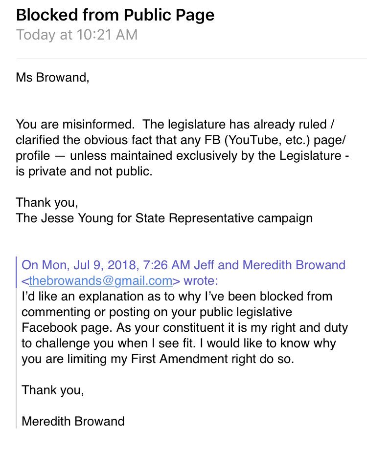 @ACLU_WA I need advice. Can my elected official block me from commenting/posting on his public Facebook page that serves as official social media for his legislative office?pic.twitter.com/Z1ou8xcmpC