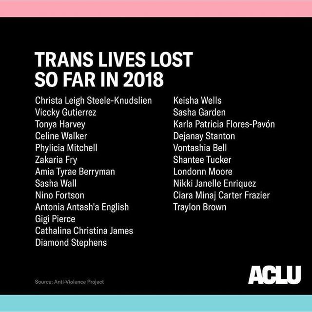 According to @antiviolence, at least 23 transgender people, most of them transgender women of color, have been killed in the United States this year. The Transgender Day of Remembrance seeks to highlight and honor those lost. Caption @acluofiowa