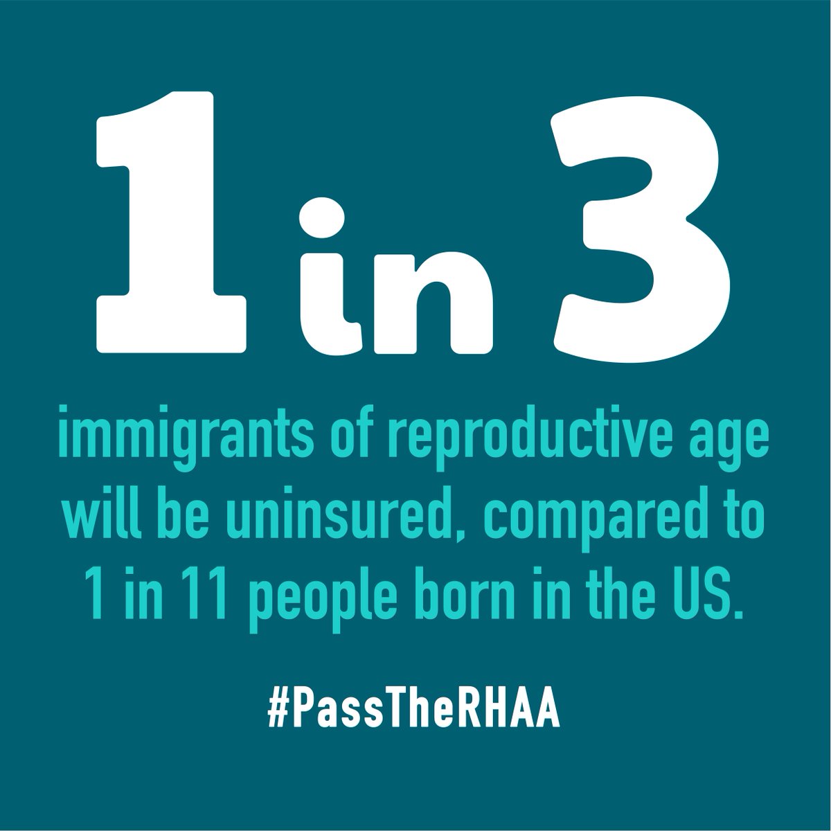 1 in 3 immigrants are uninsured vs. 1 in 11 of people born in the US. This needs to change. The #RHAA will ensure that ALL immigrants have access to a full range of reproductive healthcare services.