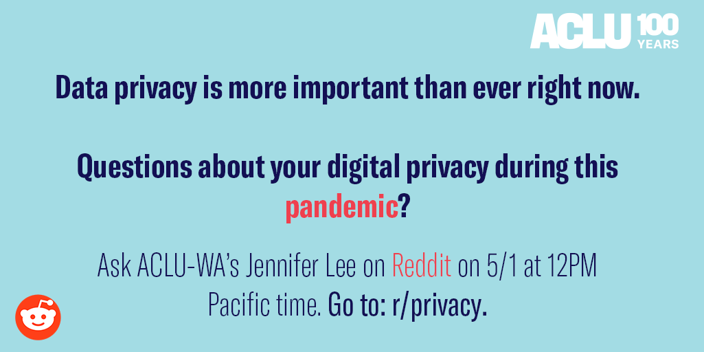 ACLU-WA's Technology and Liberty Project Manager, Jennifer Lee, will be on @reddit this coming Friday to answer your most pressing digital privacy questions in the time of #COVID19.