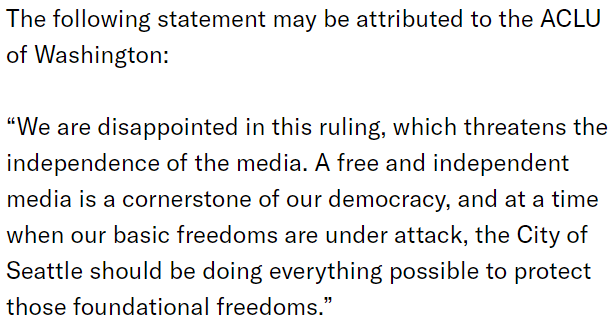 ACLU of Washington statement on ruling that Seattle media companies must turn over protest footage to police https://www.aclu-wa.org/news/aclu-washington-statement-ruling-seattle-media-companies-must-turn-over-protest-footage-police …pic.twitter.com/hRoGwikck7