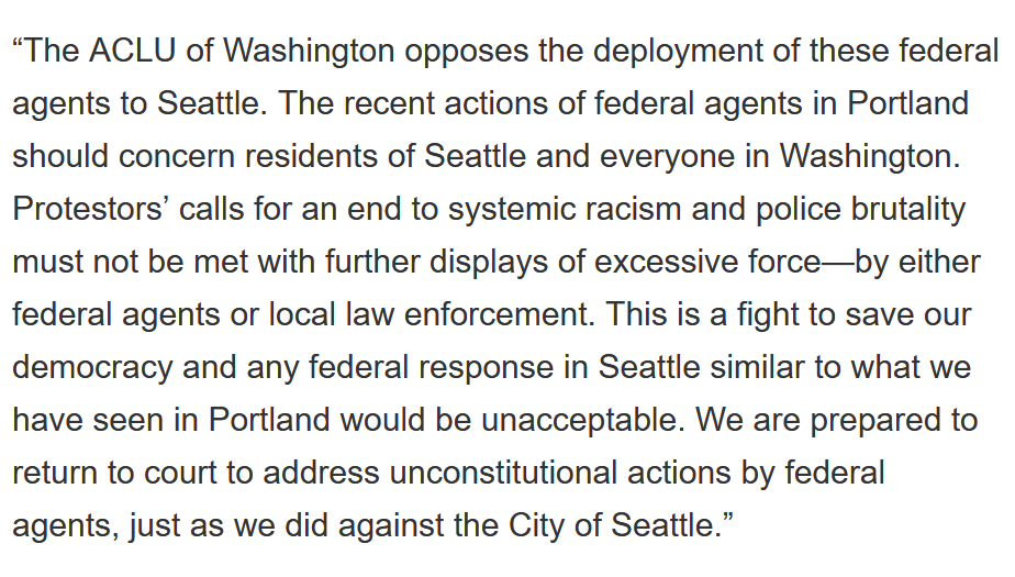 The Department of Homeland Security has announced the deployment of a tactical team of border officers to protect federal property in Seattle. Read more on the @ACLU_OR lawsuit against federal agents here: https://www.aclu.org/press-releases/aclu-sues-federal-agents-portland …pic.twitter.com/9ZMRpDKpOr