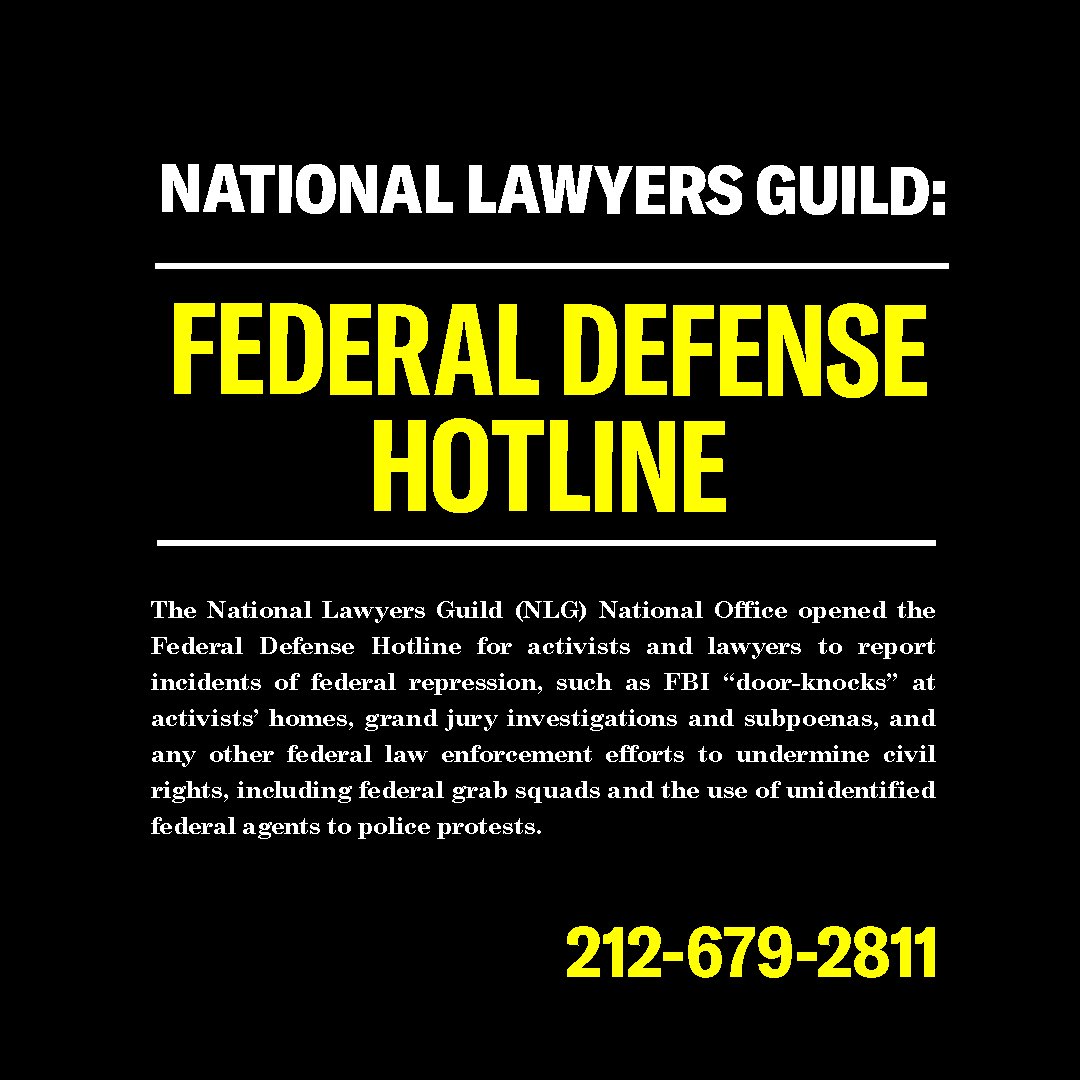 The @NLGnews has a Federal Defense Hotline: Add 212-679-2811 to your contacts and add it to the numbers that you write on your body while protesting.pic.twitter.com/Bq3Ko7bNco