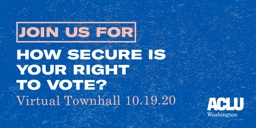 TONIGHT: The right to vote is fundamental to our democracy. As the 2020 general election nears, join us for a conversation about the challenges we still face in ensuring all Americans have a voice in their governance and what we can do about it. RSVP: https://aclu-wa.org/events/how-secure-your-right-vote …pic.twitter.com/Ejv3qZc6zQ