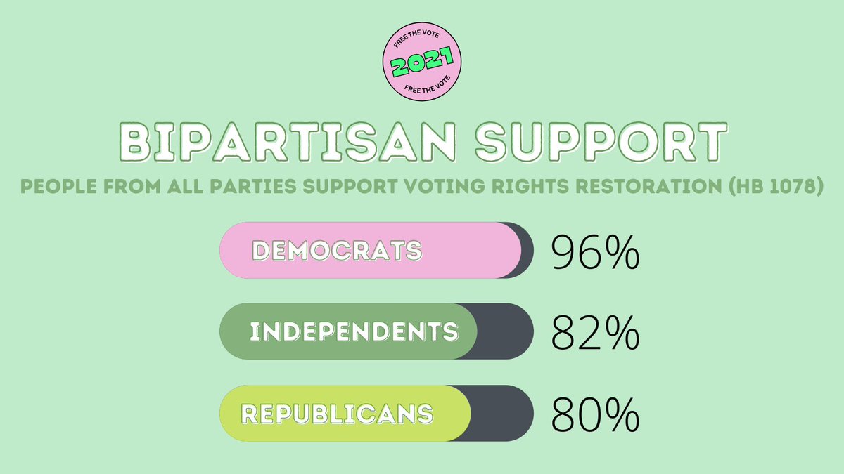 The support for voting rights restoration is almost universal - Washingtonians from all parties, regions, and demographics want every citizen in our communities to have their voices heard. Tell your Senators that they must #FreeTheVote and pass HB 1078! https://p2a.co/9AiFtAQ pic.twitter.com/LndxFWP4GC