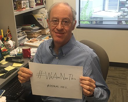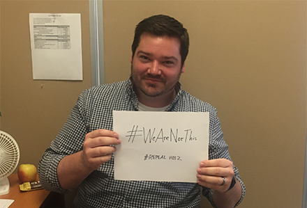 We stand with trans people everywhere to fight hate. We must repeal HB 2. #WeAreNotThispic.twitter.com/mUuJFTiIl9