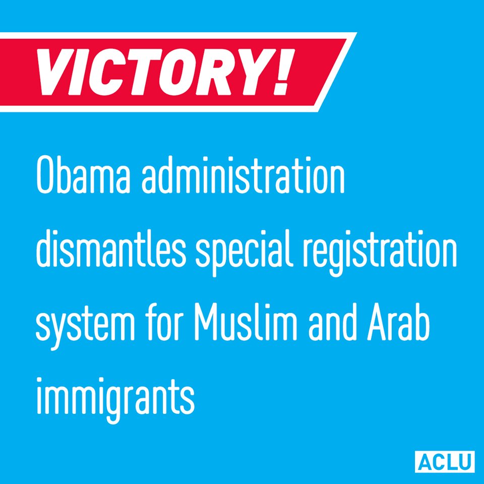 Important win! The Obama administration is fully dismantling NSEERS, the Bush-era registration system for Muslim and Arab immigrantspic.twitter.com/eBaH7DeMcs
