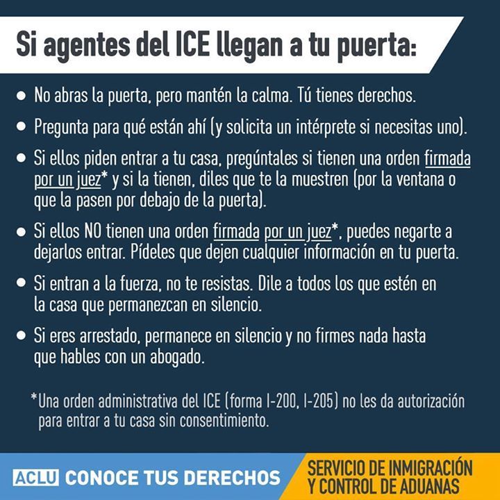 Conoce Tus Derechos: Si agentes del ICE llegan a tu puertapic.twitter.com/Yyx7jVCYuP