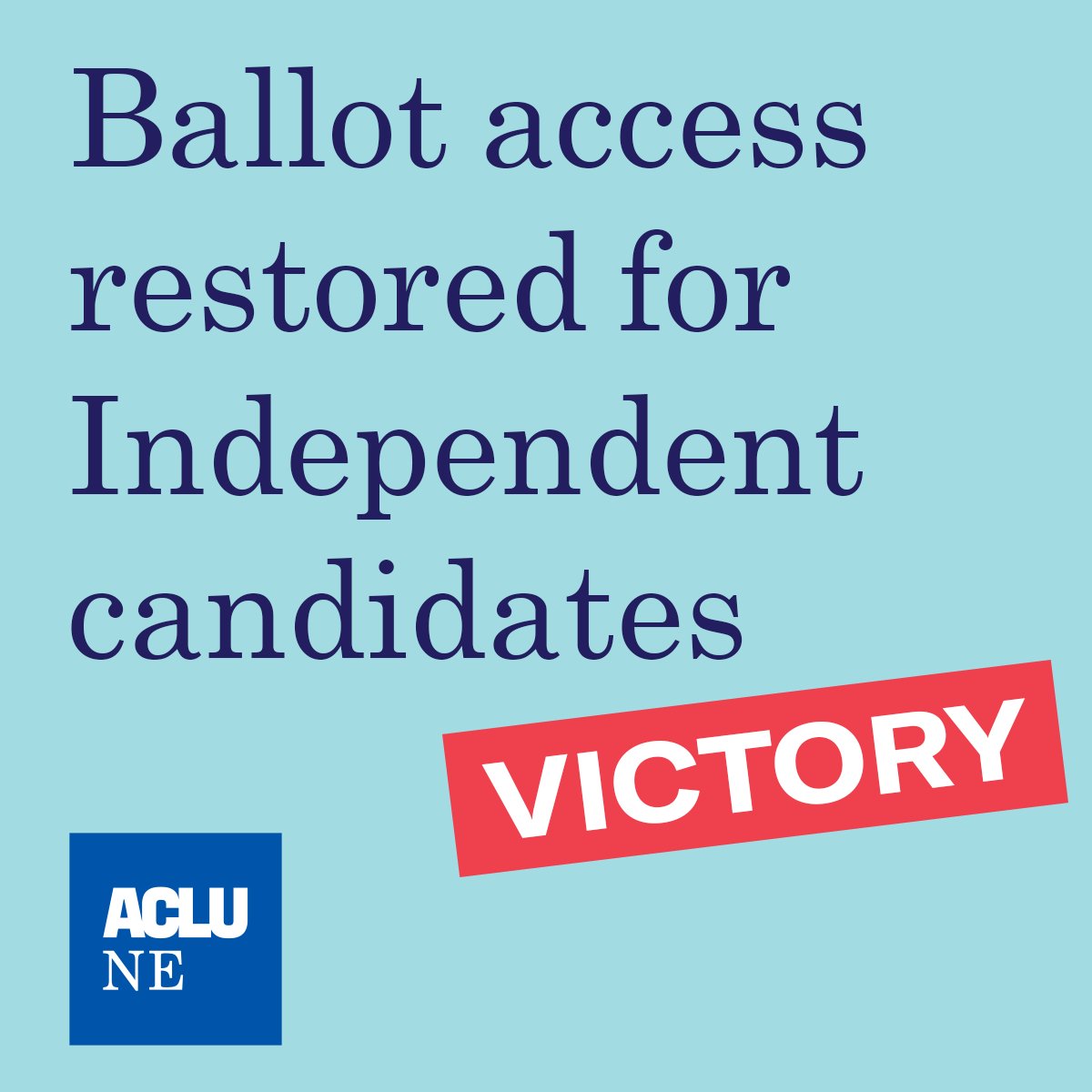 BREAKING: Sec. of State John Gale settles ACLU challenge of Nebraska law blocking Independent candidates from the ballot. #victory