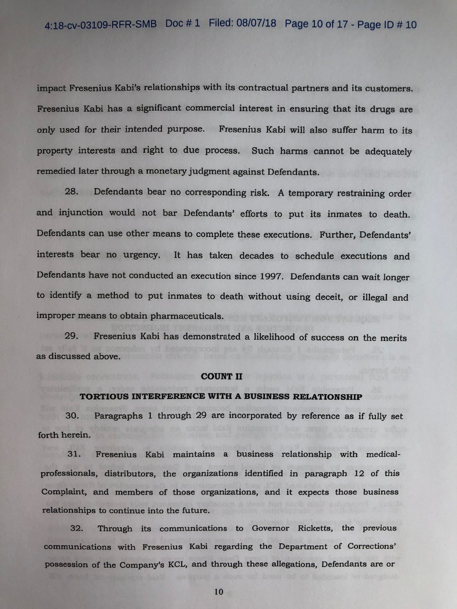 From the lawsuit: "Defendants can wait longer to identify a method to put inmates to death without using deceit, or illegal and improper means to obtain pharmaceuticals."pic.twitter.com/Nb7wWVMmjx