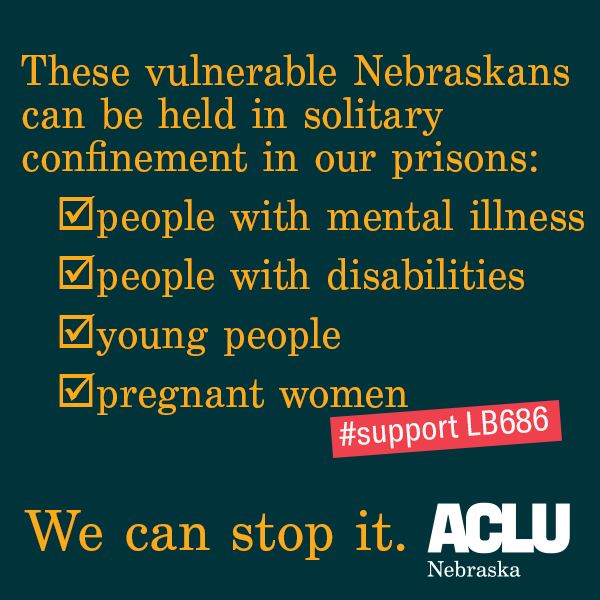 ACTION: Senators are debating LB686, a bill containing a ban on confining vulnerable Nebraskans in solitary confinement. This is extreme isolation with little human contact, fresh air, exercise or mental healthcare. Tell your senator to support it: https://action.aclu.org/send-message/ne-solitary-mentally-ill …pic.twitter.com/ywEGbToNsQ