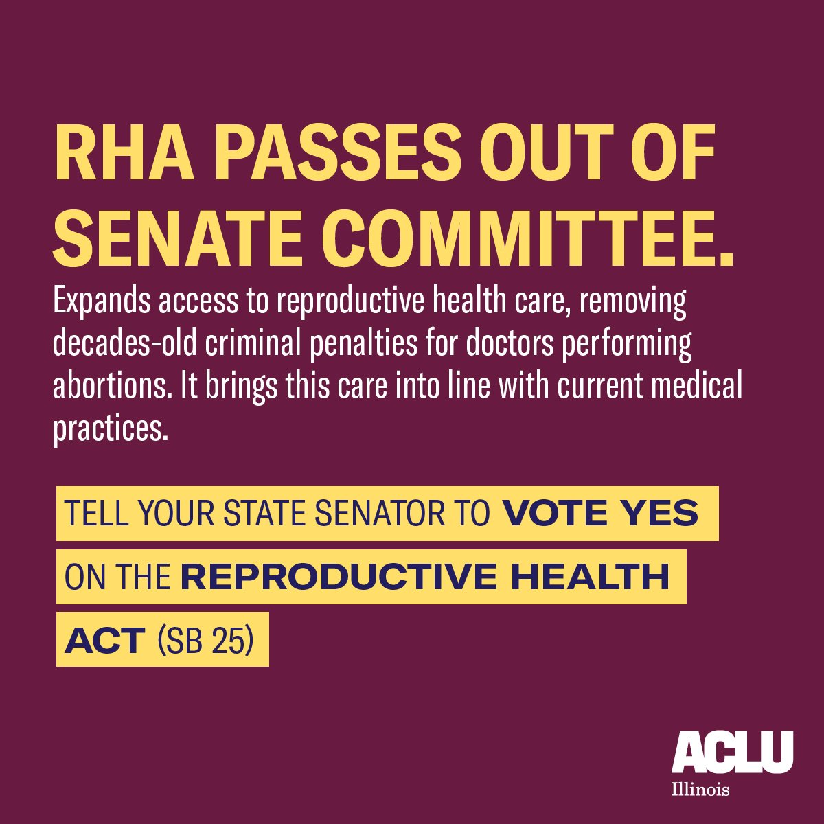 ONE STEP CLOSER! The Reproductive Health Act is now on its way for a final vote before the Illinois Senate. You can call 217-993-8096 to be connected directly with your State Senator and tell them to #PasstheRHA #twill #RHAinIL pic.twitter.com/Ufuu9YT8jz