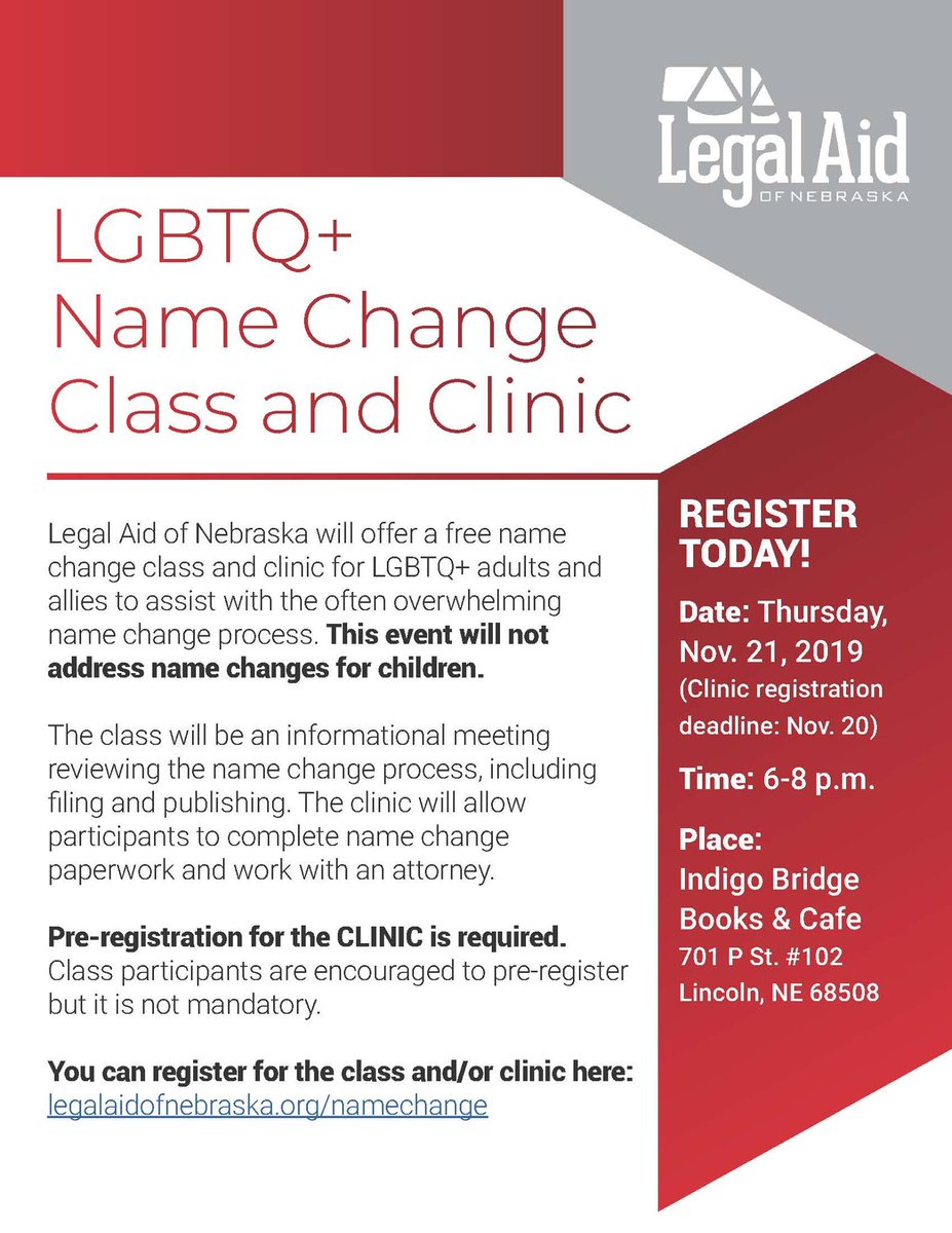An event so nice they're doing it twice! With the great response to the first clinic, our friends at Legal Aid of Nebraska are offering a second name change clinic in Lincoln!pic.twitter.com/uMyjxUTfny