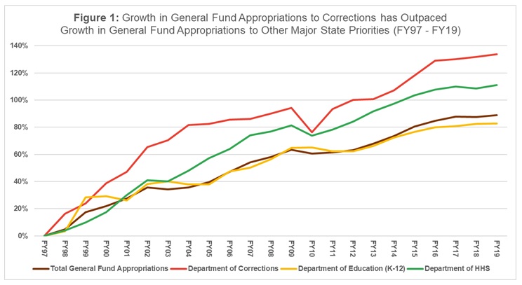 - The red line is growth in Corrections funding.