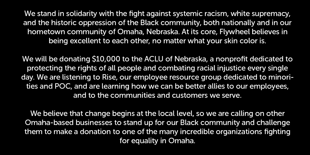 We stand in solidarity with the fight against systemic racism, white supremacy, and the historic oppression of the Black community, both nationally and in our hometown community of Omaha, Nebraska. pic.twitter.com/rOknizbuMH