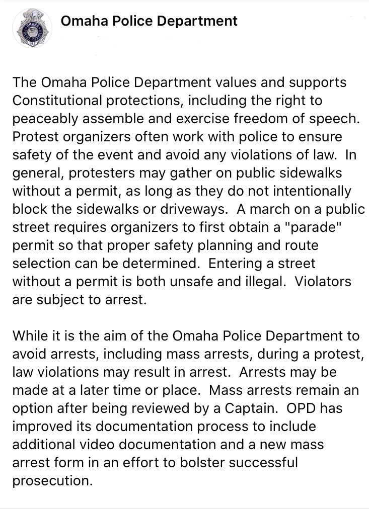 The response to protests against police brutality should not be threatening more mass arrests.https://twitter.com/OmahaPolice/status/1301244226706067456 …
