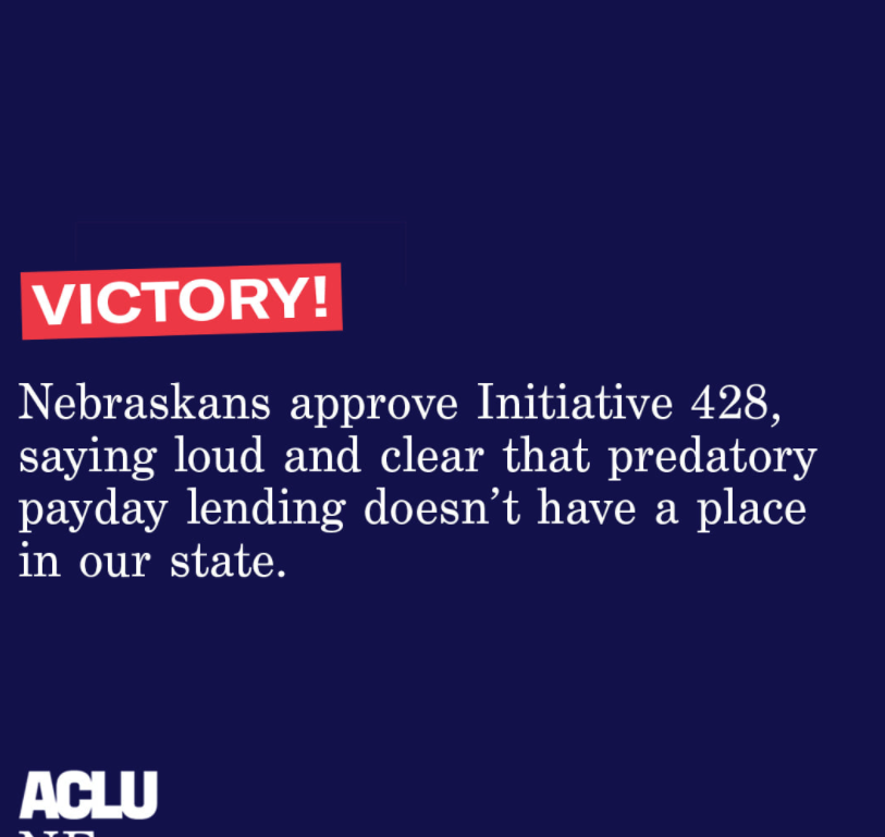 Another victory for all Nebraskans! Together, we took a stand against predatory payday loans. This was a key economic and racial justice initiative for us and our partners at @VoteFor428. https://twitter.com/stoddardOWH/status/1323817348311273473 …pic.twitter.com/wXS9xws1qW