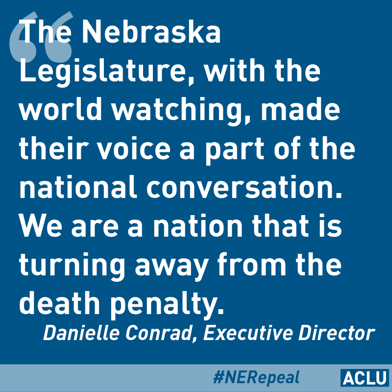 @ACLUofNE: Nebraska has made history.#nerepeal#deathpenalty http://bit.ly/1Eyc4sQ pic.twitter.com/reAmbu0DhO” Amazing, inspiring victory!