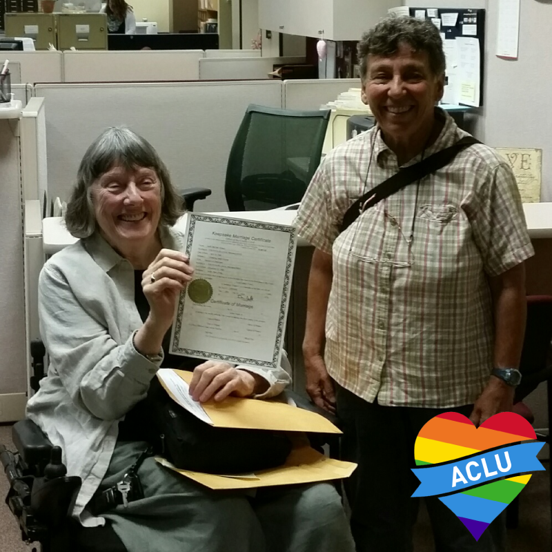 Barb & Judy, from our first marriage case in 2003, have a license! #out4freedom #LoveWins #SCOTUSMarriagepic.twitter.com/CLX0mUXCvw