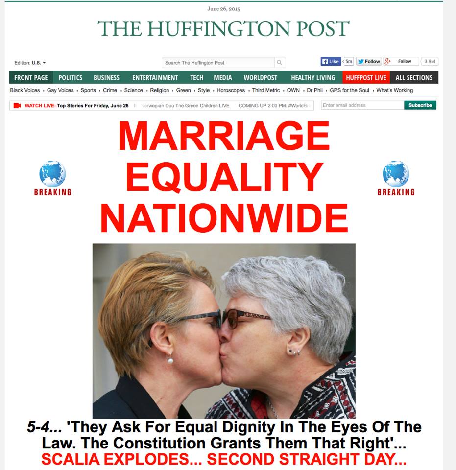 Front page of @HuffingtonPost, our Nebraska marriage clients Marj & Tracy. #lovewins #out4freedom #scotusmarriagepic.twitter.com/rYkoj9PArb